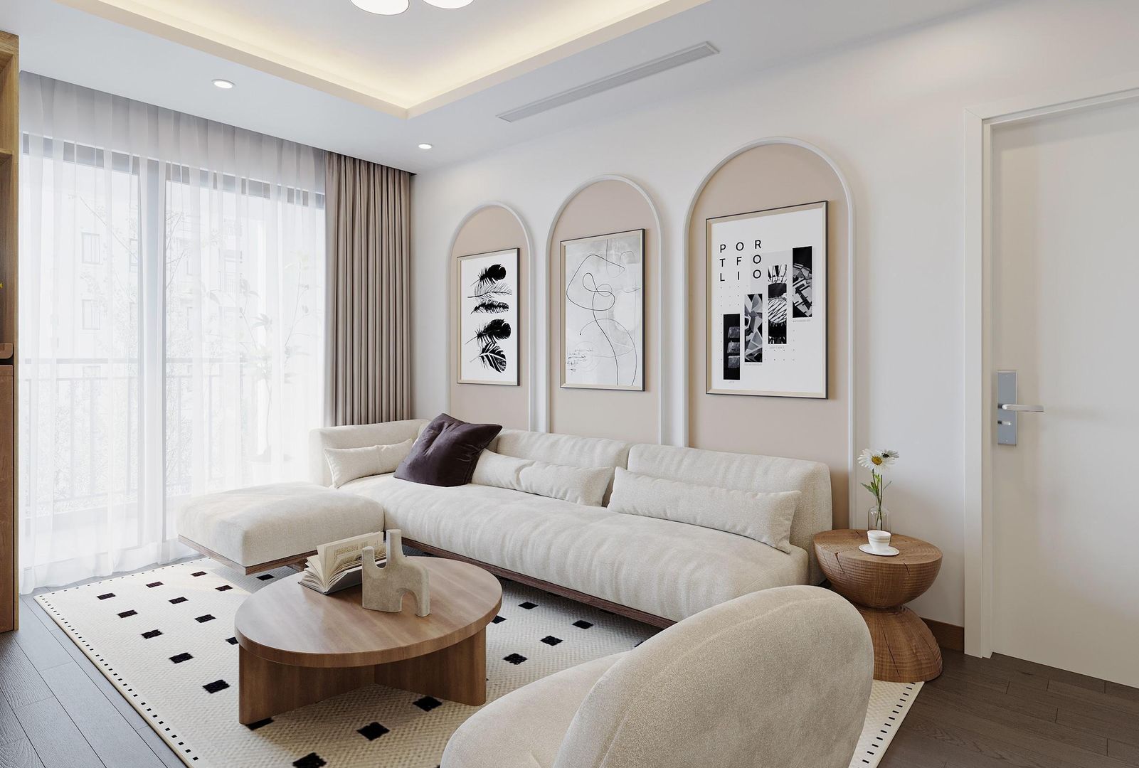 Mẫu nội thất căn hộ chung cư 2 phòng ngủ phong cách Wabi Sabi