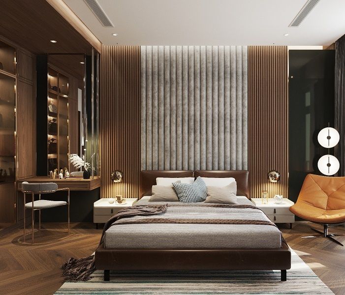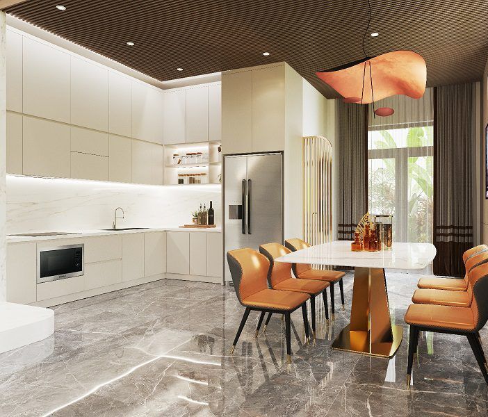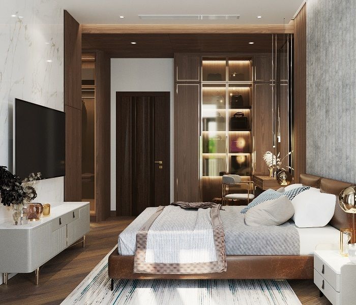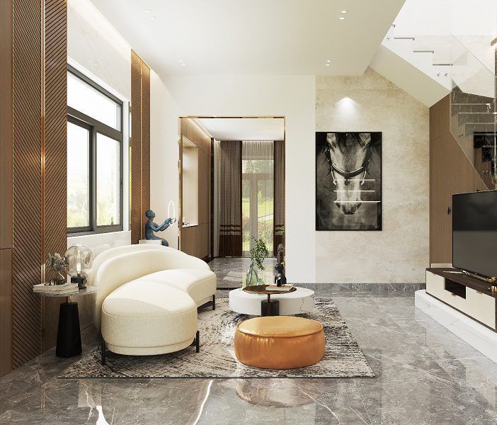 Các dòng vật liệu cao cấp như gỗ tự nhiên (gụ, óc chó, sồi Mỹ…), đá marble, granite tự nhiên, kim loại mạ PVD, da thật hay hệ phụ kiện nhập khẩu sẽ có mức giá cao hơn so với vật liệu phổ thông. Ngoài ra, những chi tiết chạm khắc thủ công, phào chỉ cầu kỳ hay đồ nội thất đặt riêng theo yêu cầu cũng làm tăng chi phí đáng kể.