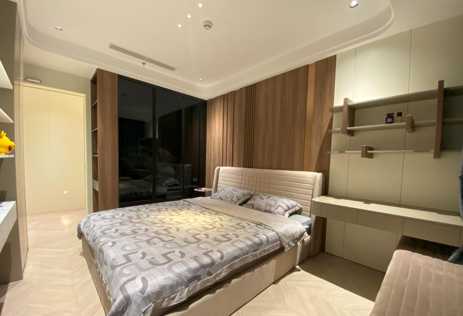 Các phòng ngủ được thiết kế theo nhu cầu riêng của từng thành viên, ưu tiên sự thoải mái và riêng tư. Tủ quần áo âm tường, bàn làm việc và hệ tab đầu giường được bố trí hợp lý, vừa tối ưu diện tích vừa tạo điểm nhấn thẩm mỹ.