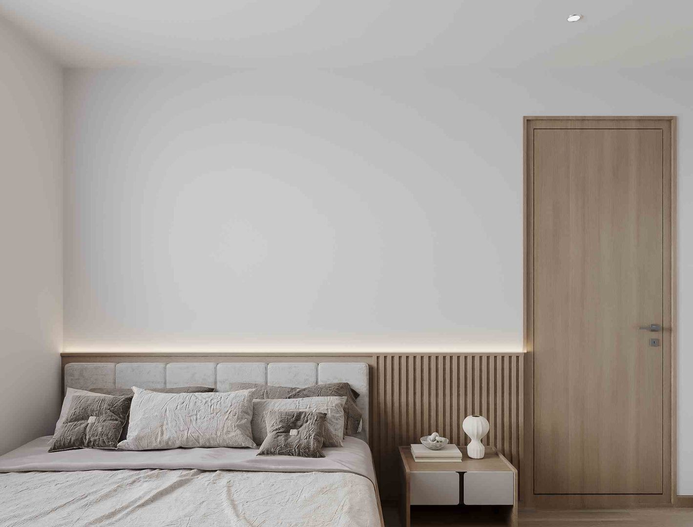 Trong dự án thiết kế nội thất tại Hinode City, Công ty Nội Thất An Cường Miền Bắc đã tập trung khai thác sự tinh gọn và sang trọng cho không gian phòng ngủ Master. Tông màu trung tính chủ đạo kết hợp cùng điểm nhấn gỗ tự nhiên mang lại sự ấm áp, hài hòa và phù hợp với phong cách hiện đại mà dự án hướng tới.