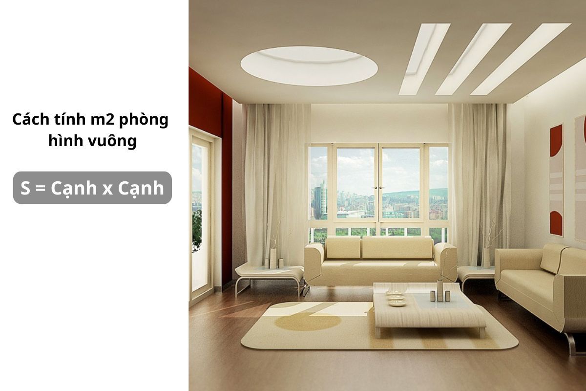 Với phòng hình vuông (4 cạnh bằng nhau), cách tính còn đơn giản hơn.